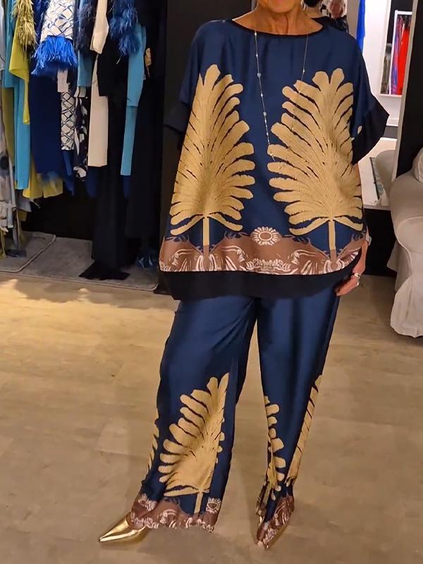 Casual Crew Neck Satin Printed Suit