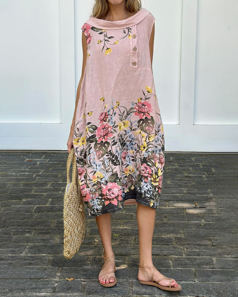 Casual Sleeveless Floral Print Dress