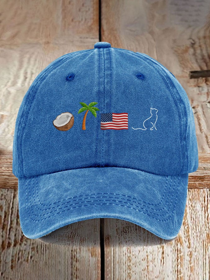 Coconut Palm Tree Flag And Cat Printed Baseball Cap