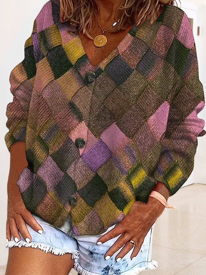 Fashionable Printed Casual Loose Buttoned Flannel Cardigan