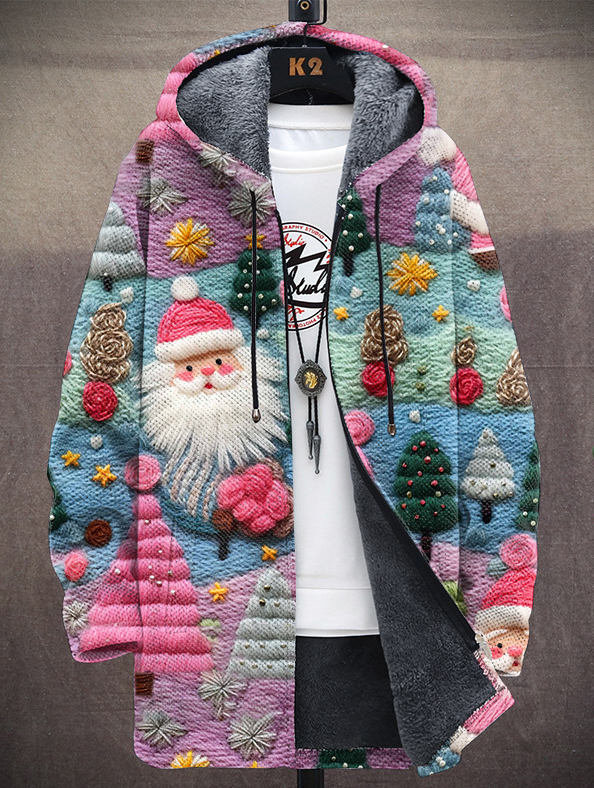 Unisex Vintage Pink Santa Print Hooded Jacket Cardigan