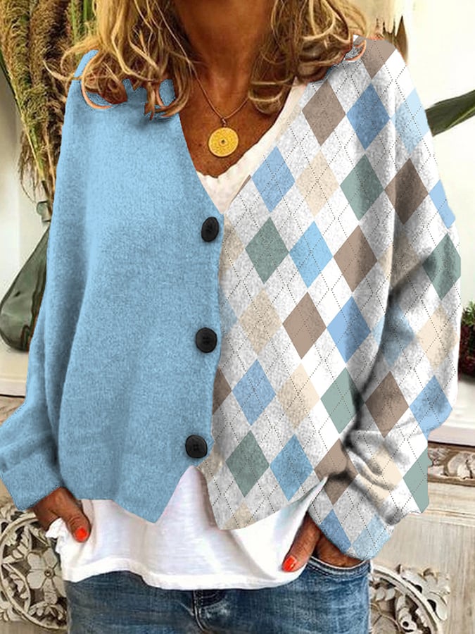 Vintage Check Print Casual Loose Button Flannel Cardigan