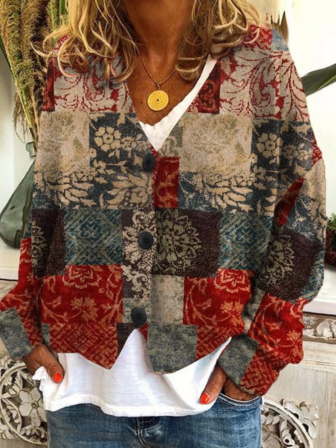 Vintage Check Print Casual Loose Button Flannel Cardigan