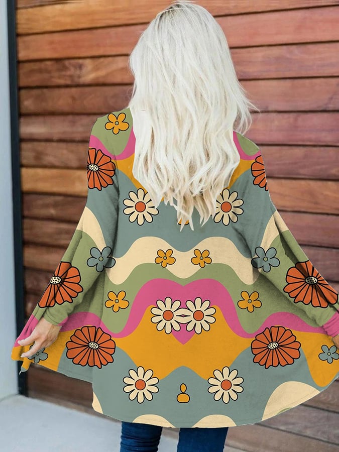 Vintage Printed Loose Fitting Long Sleeved Cardigan