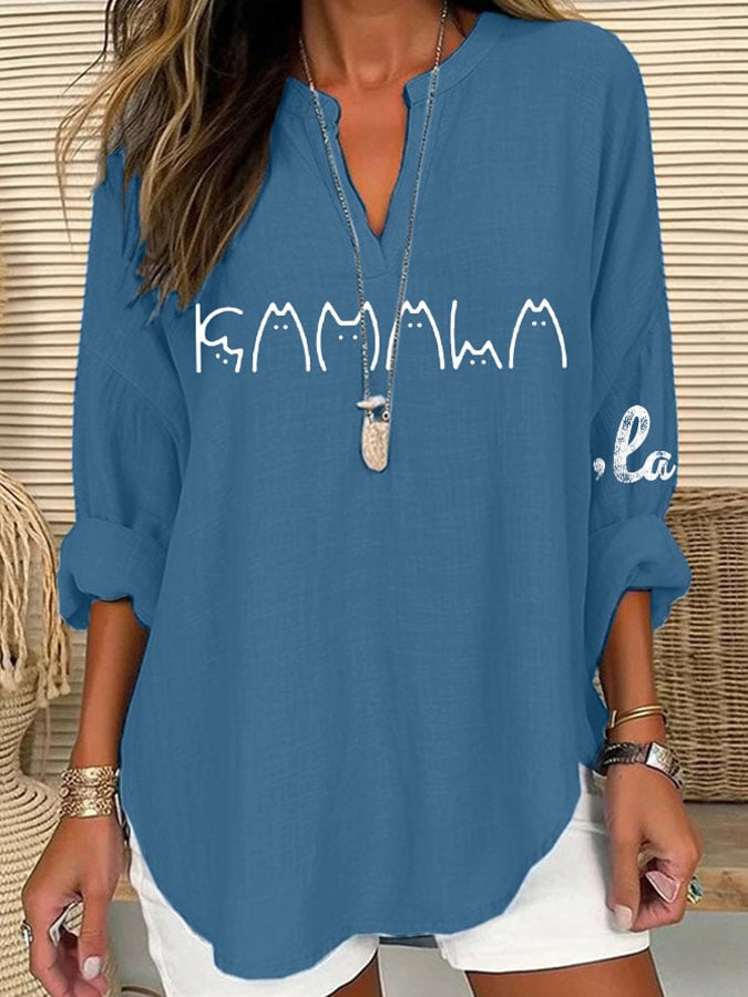Women La Print Linen Top