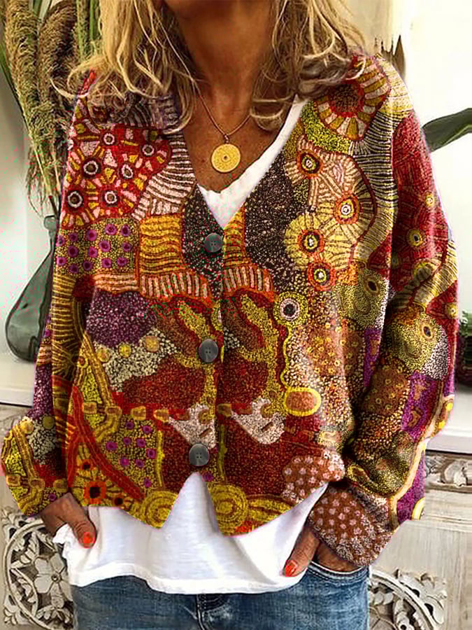 Women's Art Geometric Gradient Plush Cardigan