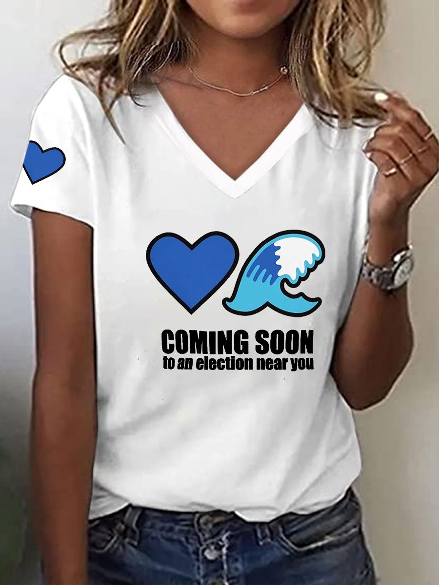 Women's Blue Wave Printed V-Neck T-Shirt