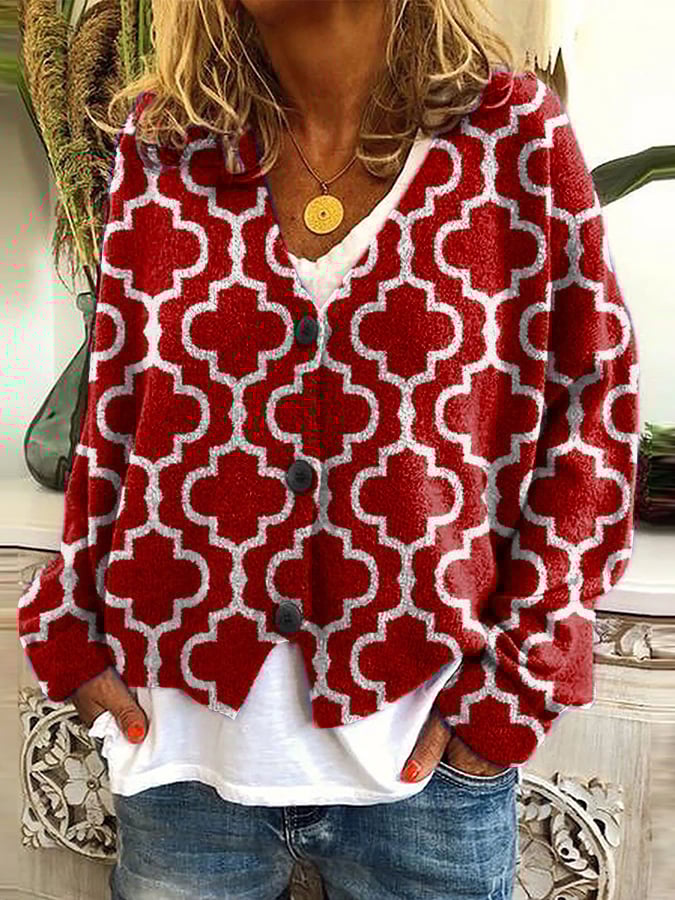 Women's Casual Art Print Plush Cardigan