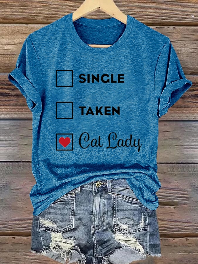 Women's Cat Lady Printed Short-Sleeved T-Shirt