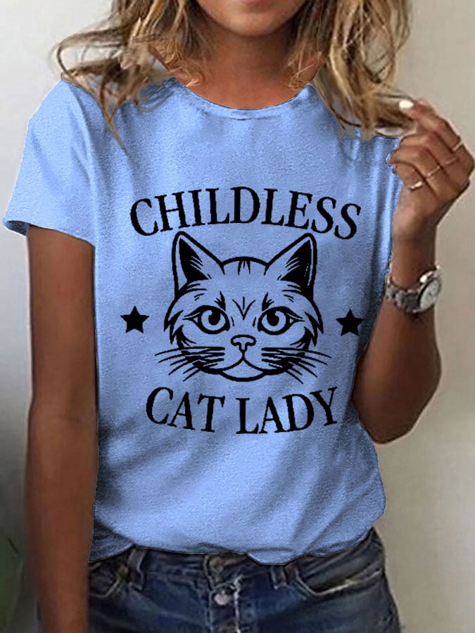 Women's Childless Cat Lady Cat Print O-Neck T-Shirt