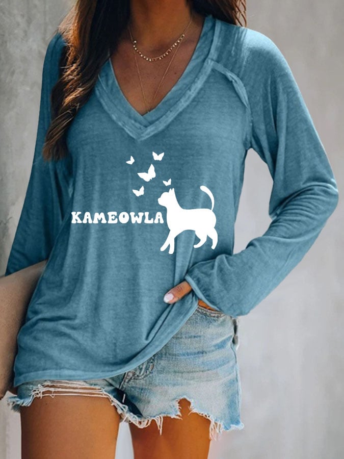 Women's Childless Cat Lady Print V Neck T-Shirt