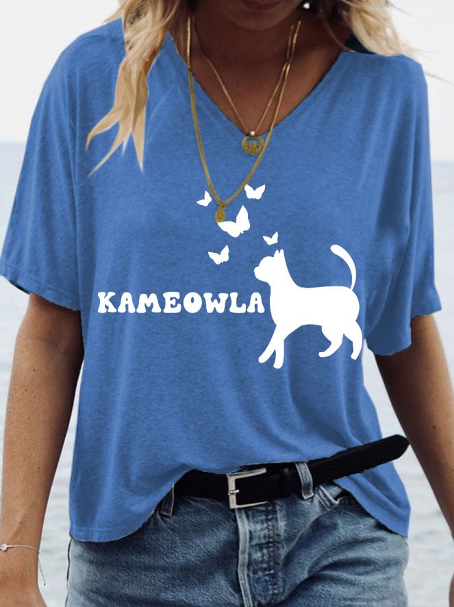 Women's Childless Cat Lady Print V Neck T-Shirt
