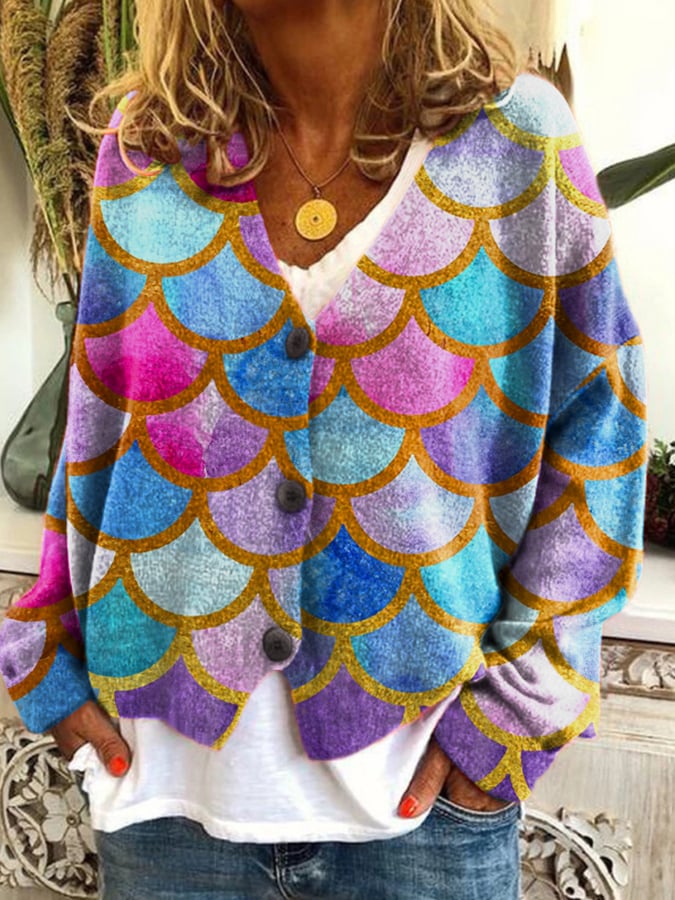 Women's Colorful Printed Loose Flannel Cardigan
