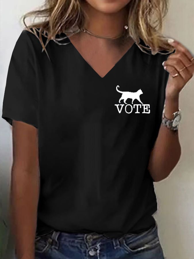 Women's Feminist Cat Print Casual T-Shirt