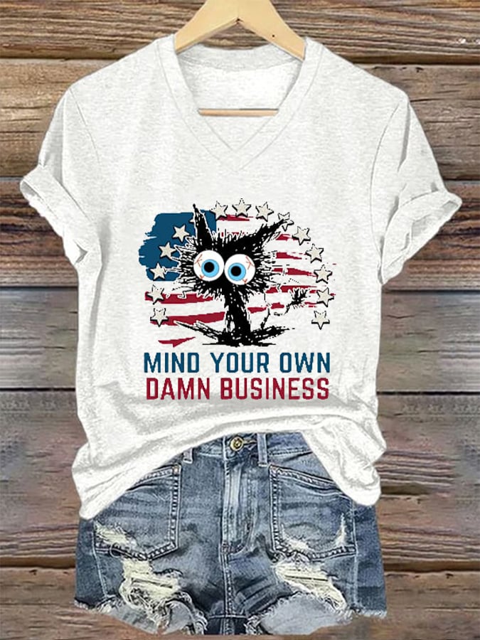 Women's Funny Mind Your Own Damn Business Cat Lady Casual Tee