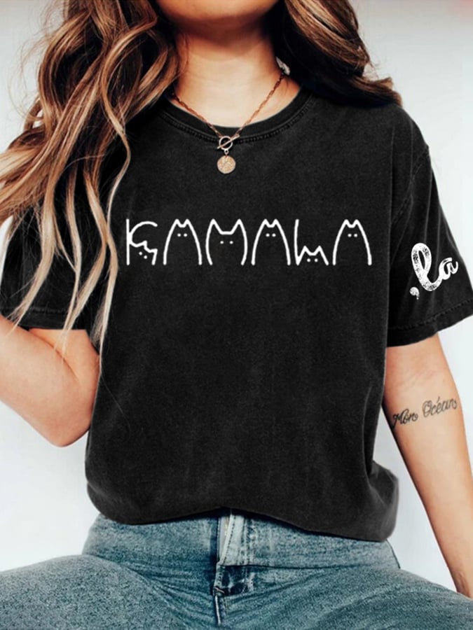 Women's La Cat Printed Short-Sleeved T-Shirt