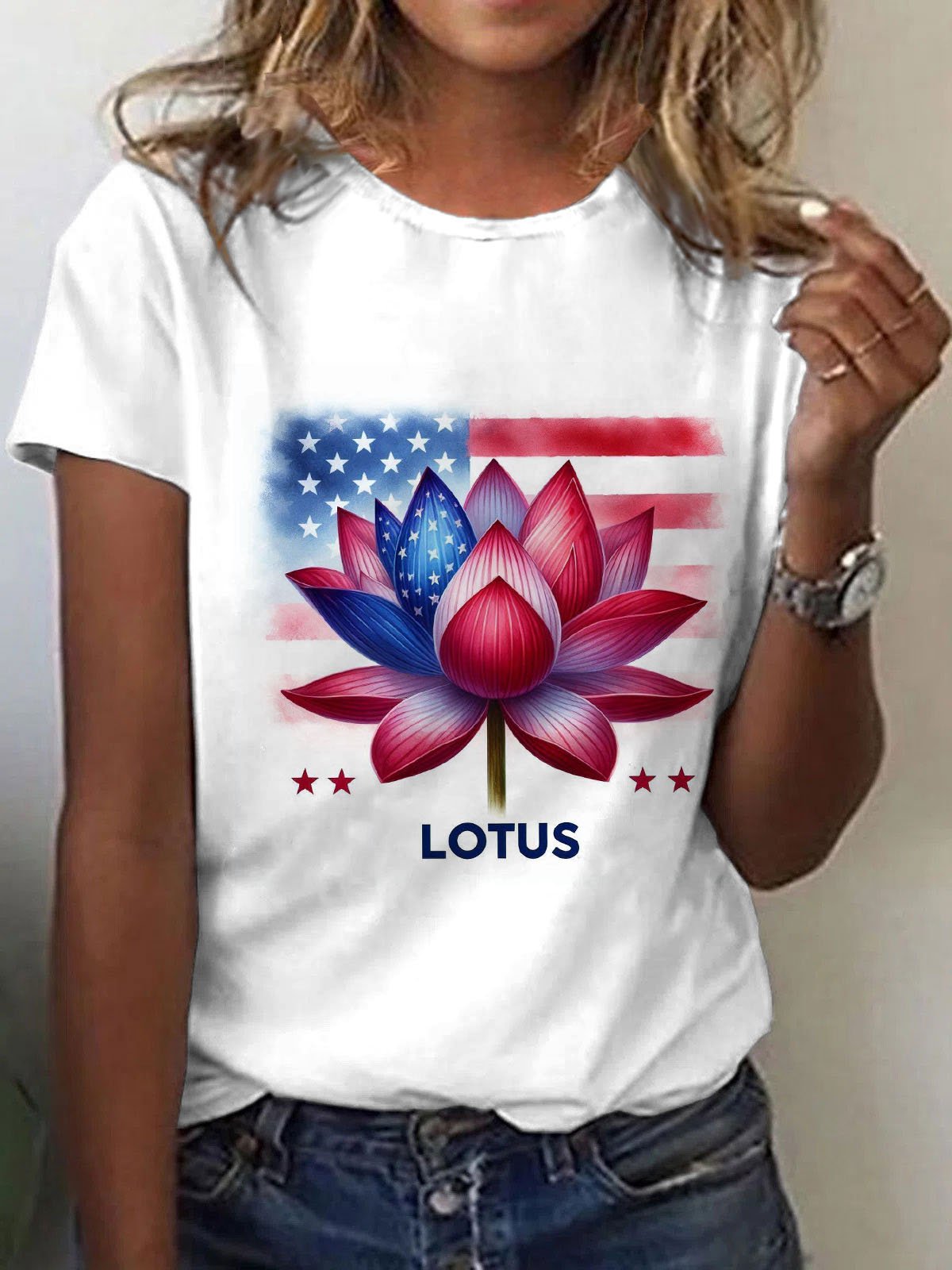 Women's Lotus USA Flag Print V-Neck T-Shirt