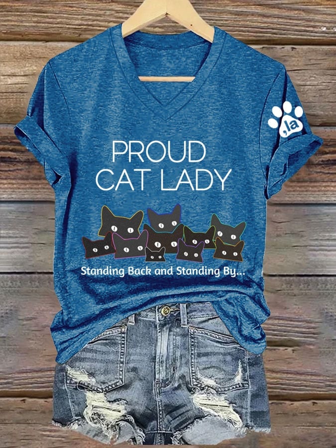 Women's Proud Cat Lady Standing Back And Standing By Printed Casual V-Neck T-Shirt