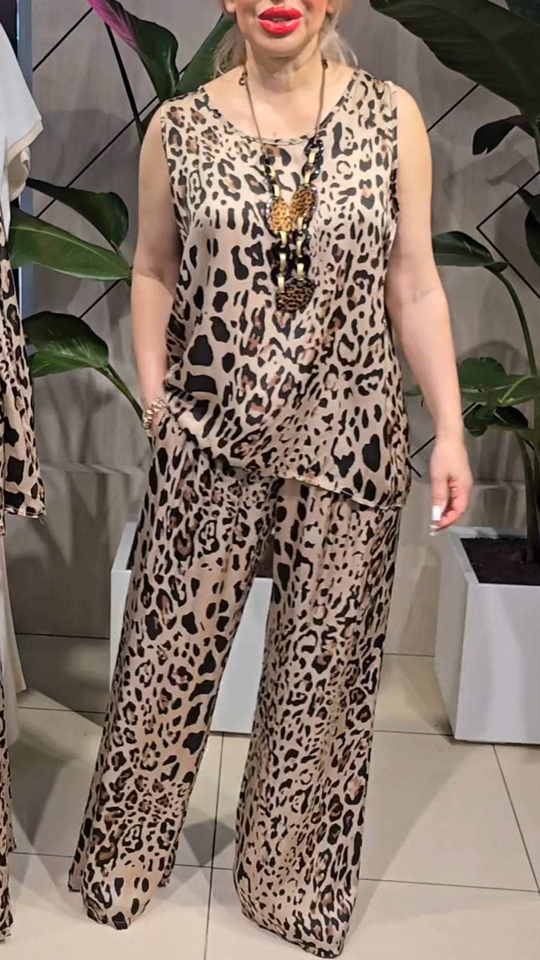Women's Round Neck Sleeveless Casual Leopard Print Suit