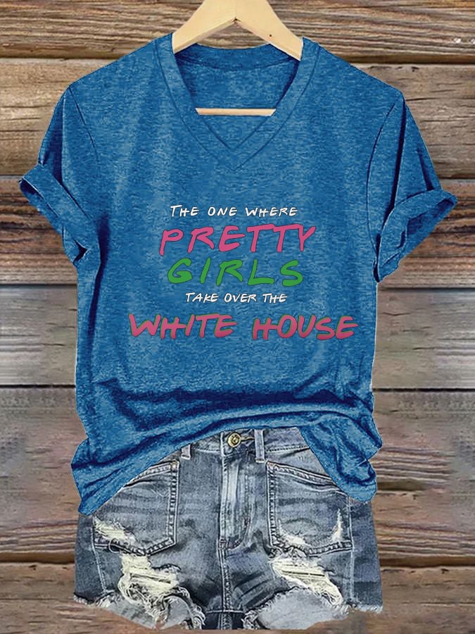 Women's The One Where Pretty Girls Take Over The White House Printed Casual T-Shirt