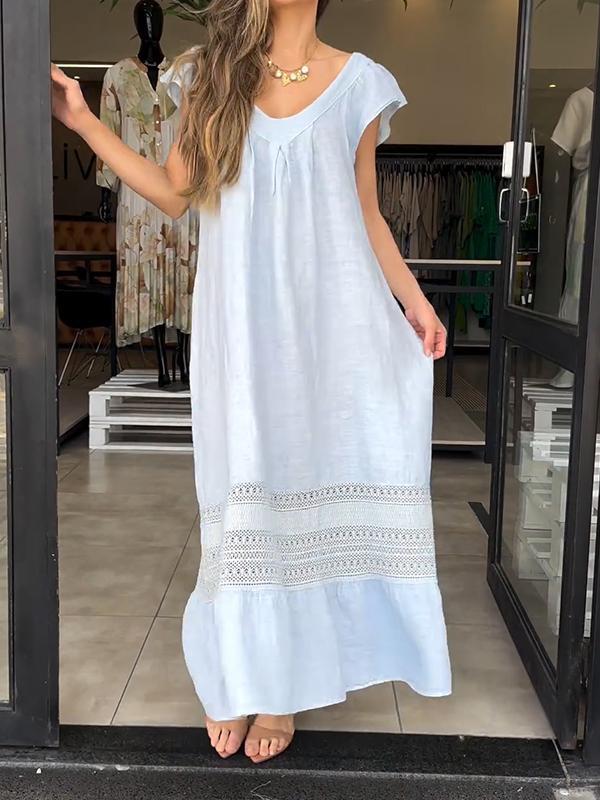 Women's V-neck Cap Sleeve Hollow Dress