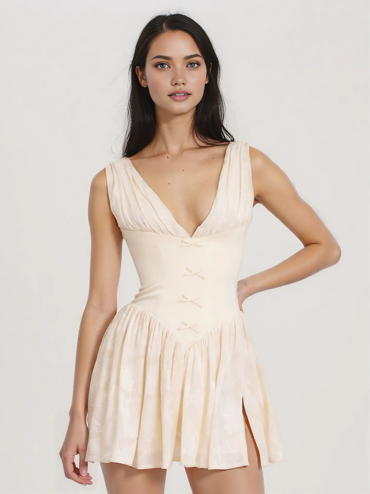 Zahara Off White Jacquard Drop Waist Mini Dress